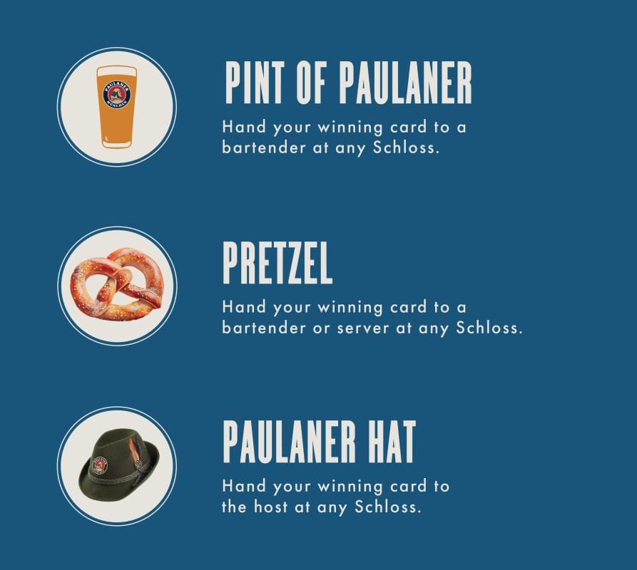 - Winners of the ‘big six biers’ must claim all 6 in one transaction. This can be any combination of the ‘Bix Six’ biers. Paulaner, Spaten, Löwenbräu, Hacker-Pschorr, Augustiner (500ml bottle), or Hofbräu.
