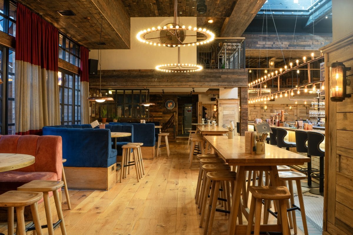 - High-top tables can be included to increase capacity up to 80 guests, giving you the entire back section of our Schloss.