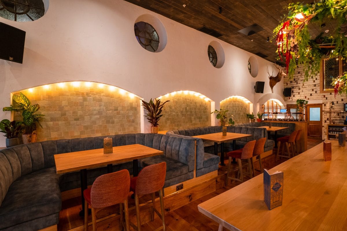 Multiple drinks booths, high-top tables and the rear bar section of our Schloss, for parties up to 100.